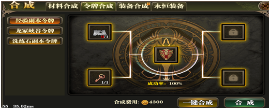 令牌合成,作为进入副本的必备道具,商城也有售卖,但是通过合成就节省了一大笔费用,何乐而不为?