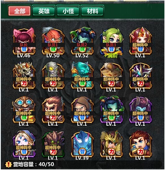 玩家可通过主页中的“营地”查看拥有的英雄数量、等级等相关信息。单击某个英雄可以查看该英雄的详细信息,并且可对英雄进行锁定与解锁操作,防止误操作出售。