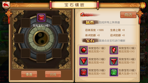 点击合成按钮即可进行合成,3个N级宝石可以合成1个N+1级宝石,当然也需要支付一定的合成费用。