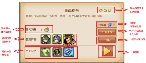 副本是装备和魂石获得主要途径,副本分为3个内容‘装备副本’‘魂石副本’‘过关斩将’