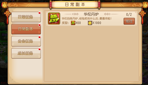 根据玩家等级会开启不同的日常副本,有战队经验、经验丹、金币奖励。