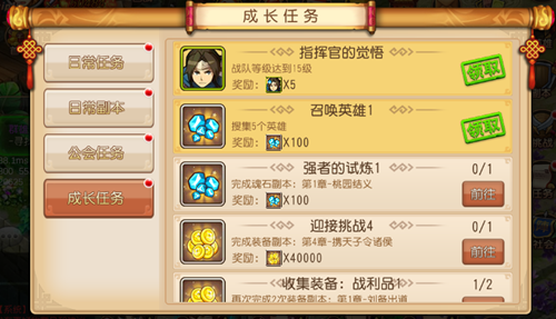 达到一定的任务目标,可获得对应的奖励,包括灵魂石、钻石、金币奖励