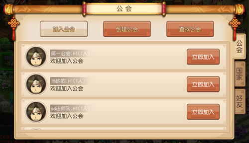 社会界面包含国家、公会、好友,完成主线‘斩杀董卓’开启。
