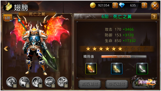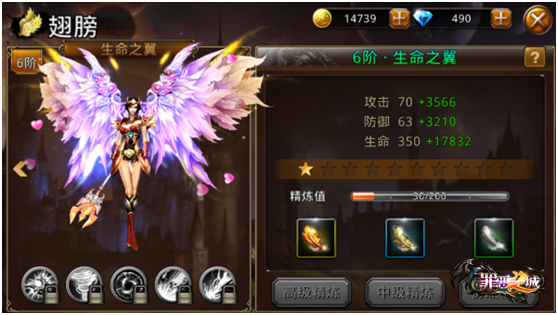 翅膀系统也是游戏一大亮点,精炼使用的羽毛活动方式可以通过位面神殿,献祭,副本获得,升阶不仅可以让翅膀更加华丽,还可以提升人物属性,增加战力!