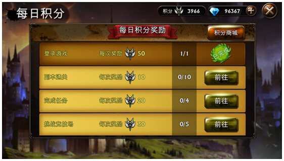 开启积分功能后,玩家就可以打开每日积分列表,完成积分列表中罗列的时间后将获得积分