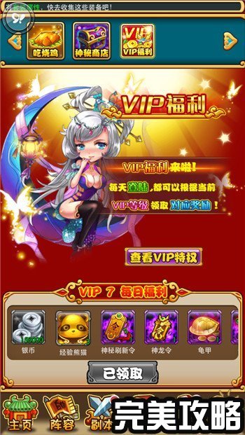每日登陆都会按照VIP等级不同获得不对应奖励。