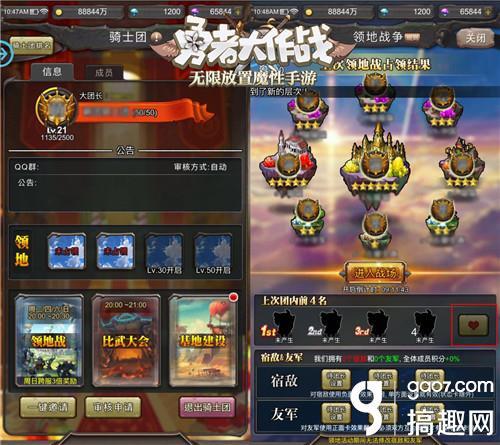 骑士团是《勇者大作战》中的公会玩法,大部分金币彩蛋就埋藏在这里。第一个金币彩蛋是有前提的,需要你所在的骑士团参与了领地战。在骑士团中点击左下角的【领地战】,就可看到上次团内前四名排行榜,在他们的右侧有一个红心按钮,点击该按钮即可获得100万金币。所以,为了能获得更多金币,赶紧找一个靠谱的骑士团加入吧!