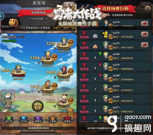 《勇者大作战》竞技场排名的金币彩蛋埋得也很深。在竞技场的左下方有一个【所有排名】的卷轴,点开后将能看到全服竞技场排行榜。和骑士团排名一样,在竞技场前三的右侧也会有拇指按钮,点击即刻送你20万金币。