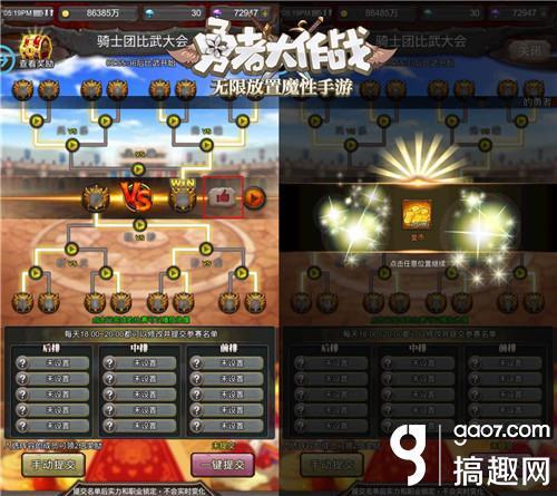 第二个金币彩蛋依然埋藏在骑士团中。点击下方中间的【比武大会】,就可看到比武大会的主要赛程。在冠军的旁边会有一个拇指按钮,点击直接送100万金币,是不是很爽。